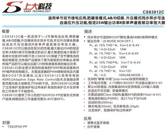 一 CS83812的特性同步异步可选的BOOST模块集成AB类D类两种模式