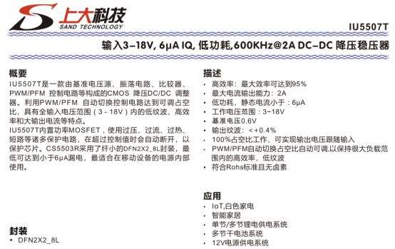 IU5507:输入3-18V,6uA静态电流,低功耗,2A,DCDC降压稳压器: