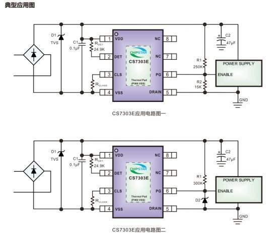 SD4923兼容替代芯片CS7303:符合IEEE802.3af/at标准,PoE PD控制器CS7303E是一款与SD4923E完全兼容的以太网供电(PoE)受电设备(PD)控制器,引脚定义、功能特性与外围配置全面匹配,无需修改PCB即可无缝替代SD4923E,适用于网络语音电话(VoIP)、安防摄像头系统、无线接入点(AP)、远程网络供电设备及视频会议终端等场景。芯片符合IEEE802.3af/at标准,输入电压范围0~57V,可承受高达100V电压冲击,集成100V 0.6Ω通路开关MOSFET,浪涌电流限制150mA,直流输入电流限制900mA(典型值),工作结温-40℃~125℃,环境温度-40℃~85℃,采用ESOP8封装,与SD4923E封装尺寸一致,安装兼容性拉满。