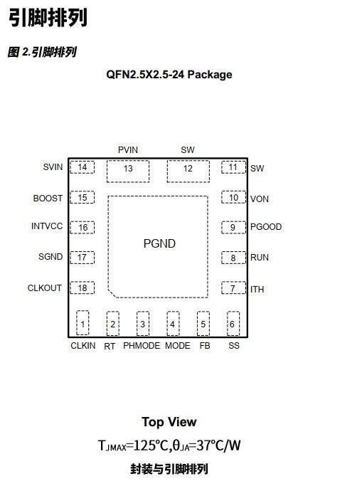 可提供24引脚(4mm×4mm)QFN封装、18引脚(2.5mm×2.5mm)QFN封装