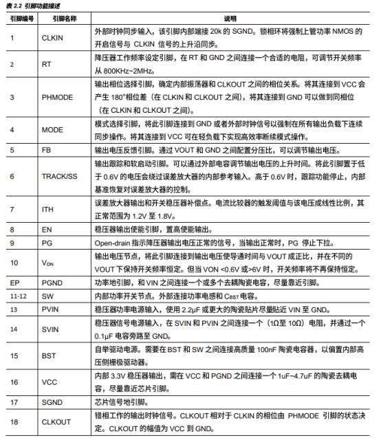 核心功能与LTC3633全面对齐,集成上下功率MOSFET(上管导通电阻57mΩ,下管35mΩ),开关频率可通过外部电阻在800kHz~2MHz范围内调节,也可与外部时钟同步,避免拍频噪声。支持0°/180°移相功能(通过PHMODE引脚控制),可多相交错并联扩展输出电流,满足大电流供电需求。输出电压通过外置分压电阻调节,基准电压0.6V(精度±1%),调节公式与LTC3633一致,兼容原电路电阻配置。