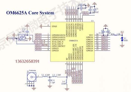 OM6625A集成最高64MHz高性能单片机,支持DMA、 GPIO 、SPI、UART、Timer、看门狗等功能,可支持32MHz外部晶体振荡器,并集成多用途12bit ADC.