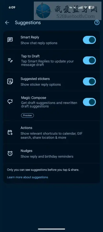 Google Messages 正在增加一项新的“点按起草”功能,以避免用户误触智能回复。进入“消息设置”>“建议”后,会发现“智能回复”下方多了一个新选项。开关左侧的文字描述即为当前设置项的行为。(如果设置界面能更清晰一些会更好。)